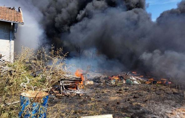 Požar je prvo zahvatio travu i nisko rastinje, a zatim se proširio na objekat za reciklažu i proizvodnju paleta, buradi i kontejnera, površine oko 200 metara kvadratnih, navodi se u saopštenju