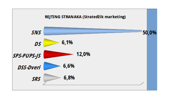 Koalicija Demokratske stranke Srbije i Dveri dobila bi 6,6 odsto glasova, a prema ovom istraživanju cenzus bi prošla još samo Demokratska stranka, koju podržava 6,1 odsto ispitanika.