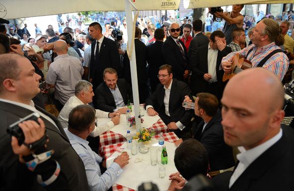 Kod "Kolarca" se okupilo oko 100 građana koji su aplaudirali i pozdravljali srpskog premijera i goste iz BiH, kojima je lokalni orkestar odsvirao pesmu "Sarajevo, ljubavi moja" Kemala Montena i sevdalinku "Čudna jada od Mostara grada", a članu predsedništva BiH Mladenu Ivaniću odsvirana je pesma "Nije život jedna žena" od Miroslava Ilića.
