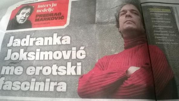 Marković je za "Kurir" rekao da je, u slučaju Jadranke Joksimović, kod njega prisutna "jedna erotska fascinacija", što je stavljeno i u naslov intervjua.