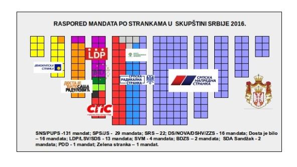 To znači da je u skupštini SNS dobio 131 mandat, SPS-JS 29, SRS 22, DS 16, "Dosta je bilo" 16, Dveri-DSS 13, SDS-LDP-LSV 13, SVM četiri, BDZ Sandžaka dva,SDA Sandžaka dva, Partija za demokratsko delovanje i Zelena stranka po jedan mandat.