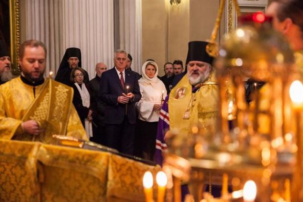 Nikolić je Svetotrojičku lavru Aleksandar Nevski posetio drugog dana boravka u Sankt Peterburgu, gde je juče svečano otvorio Generalni konzultat srbije.