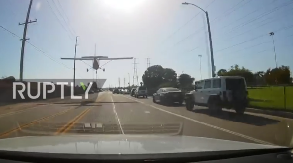 Žena pilot pokazala je svoju spretnost jer je uspela da na ulici punoj vozila, izbegavši i strujne kablove, vešto spusti letelicu, preneo je ABC.