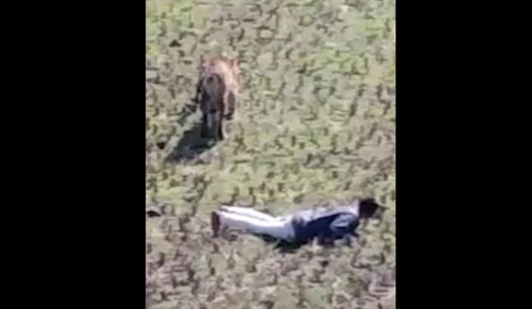 Snimak je napravio čovek koji se krio na obližnjem drvetu, dok seljake po polju juri tigar koji je izleteo iz žbunja.