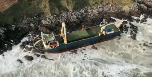 Irska obalska straža veruje da je brod sada sigurno nasukan na stenama, ali su dodali da bi mogao biti potencijalni problem ako zbog neke druge oluje, brod ponovo počne da plovi.