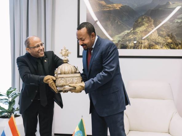 Holanska vlada je u saopštenju napisala da je kruna vlasništvo Etiopske pravoslavne crkve i da je nestala iz pravoslavne crkve Svetoga trojstva u mestu Čelokot.
