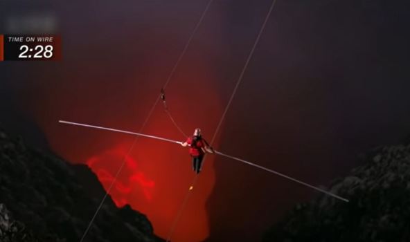 Umetnik, akrobata, Nik Valenda hodao je po žici iznad grotla aktivnog vulkana Masaja koji se nalazi u Nikaragvi.