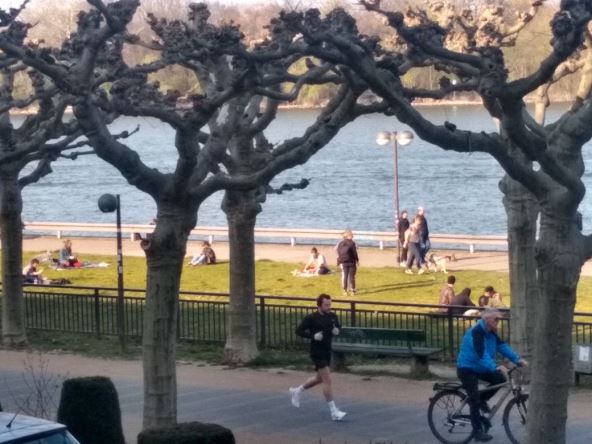 Nemce u većem broju na ulice uglavnom izvuče lepo vreme, pa je tako obala Rajne u Majncu već danima "zatrpana" šetačima, penzionerima, decom, rekreativcima, biciklistima, vlasnicima kućnih ljubimaca koji slobodno izvode svoje "drugare" u šetnju...