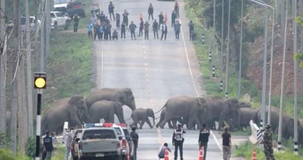 Krdo u kom su bili i odrasli i bebe slonovi potpuno je zaustavilo saobraćaj na glavnom autoputu.