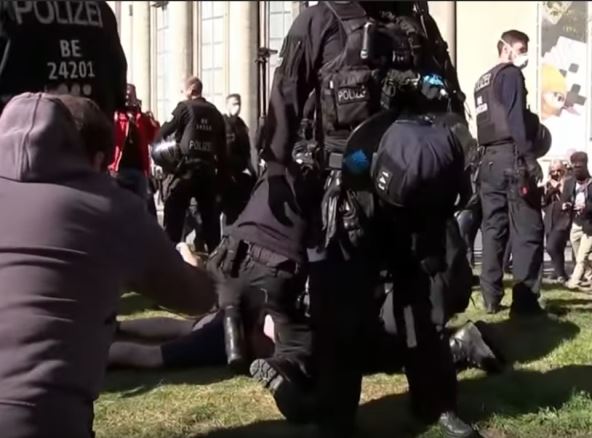 Kako prenose nemački mediji, policija je privela na informativni razgovor dva demonstranta koji su odbili da se udalje sa protesta, ali ih je ubrzo pustila na slobodu.