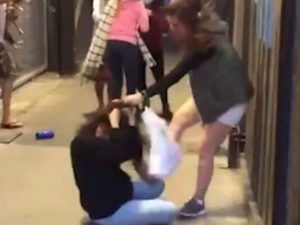 Potom je usledio fizički napad - devojka iz Singapura je gore prošla. Nju je jedna od ratobornih devojaka, vukla za kosu i udarala, dok je druga sprečavala Melzijku da joj pomogne.