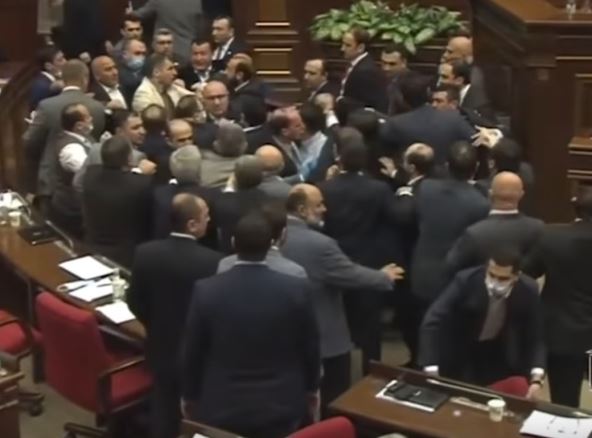 Snimci masovne tuče poslanika iz jermenske skupštine obišli su danas čitav svet.