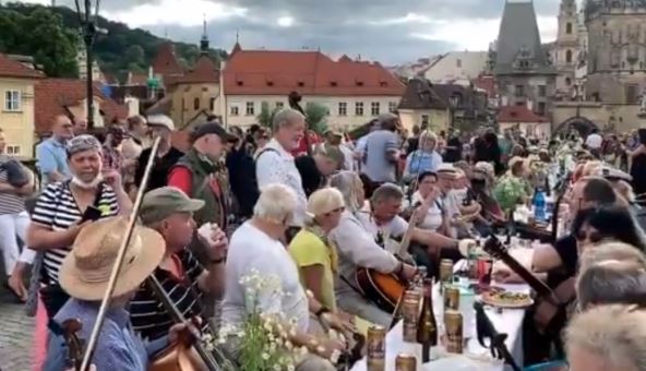Gozbom za 2.000 ljudi za stolom dugim pola kilometra preko Vltave na starom Karlovom mostu u Pragu, Česi su napravili simobolični ispraćaj korona virusa i restrikcija uvedenih zbog pandemije.