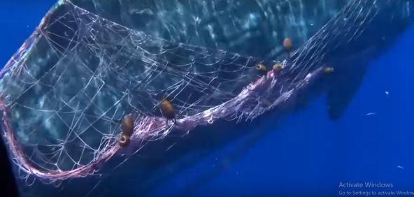 Kit je uočen u subotu, kako se bori da se oslobodi mreže koja se obično koristi za ilegalni lov sabljarke.
