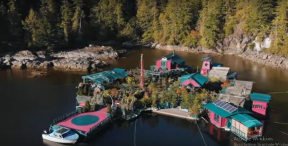 Deset kilometara severno od Tofina, Britanske Kolumbije, uz zapadnu obalu ostrva Vankuver, Ketrin King i Vejns Adams žive na održivom, plutajućem ostrvu.