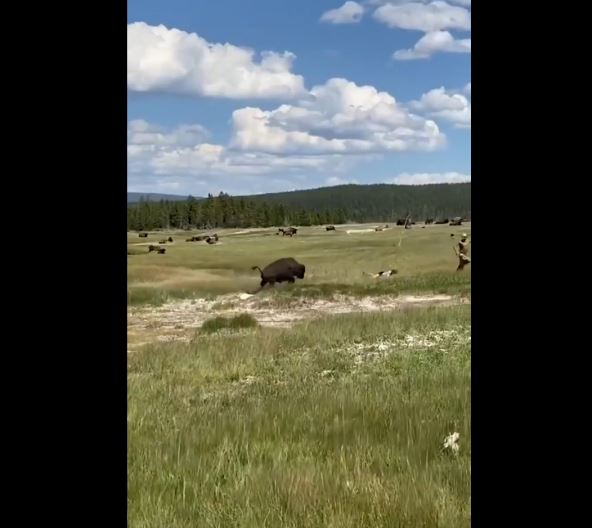 Zastrašujuć momenat kada je razjareni bizon pojurio turiste u američkom nacionalnom parku Jeloustoun zabeležen je mobilnim telefonom, ali je, srećom, napadnuta žena reagovala mudro i prošla nepovređena.