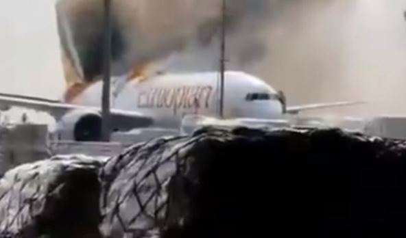 U saopštenju kompanije Etiopian Erlajns navedeno je da se avion zapalio tokom utovara tereta pre planiranog leta iz Šangaja za Sao Paolo i Santjago.