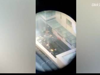 Prema navodima američkih medija, ubrzo se pojavio i video snimak kako sat vremena kasnije jedna osoba gasi kante koje su bile u plamenu.