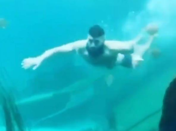 Muškarac u donjem vešu snimljen je kako se brčka u akvarijumu u sidnejskom zoo vrtu.