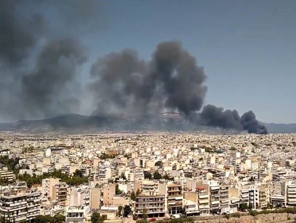Autoput Atina-Lamija je zatvoren, a saobraćajna policija preusmerava vozila. Vidljivost je smanjena zbog gustog crnog dima.
