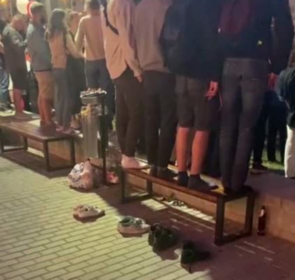 Društvenim mrežema se proširio snimak na kojem se vide demonstranati s leđa- stoje na klupi u čarapama, a pored klupe je obuća.