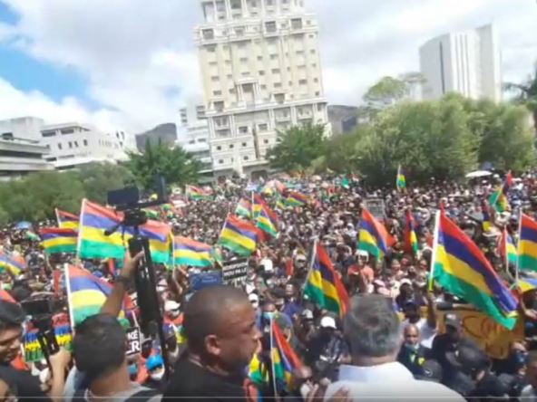 Olidač za proteste je šokantno otkrićem desetina uginulih delfina u poslednjih nekoliko dana. Neki govornici na protestu u Port Luisu pozvali su najviše zvaničnike da podnesu ostavku, a iz vlade još nije stigao nikakav komentar.