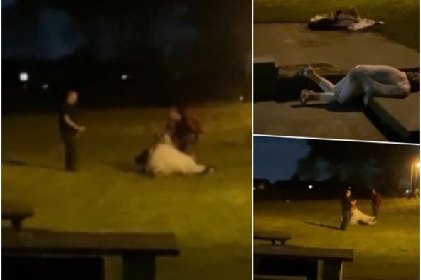Pomahnitala mlada na snimku pokušala je da obori muškarca, dok je drugi bezuspešno sklanjaju od njega.