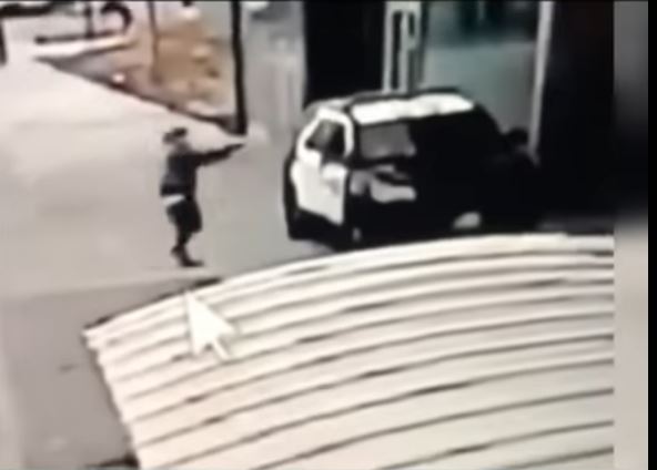 Video snimka incidenta prikazuje figuru kako se približava policijskom vozilu, otvara vatru i beži, prenosi BBC.