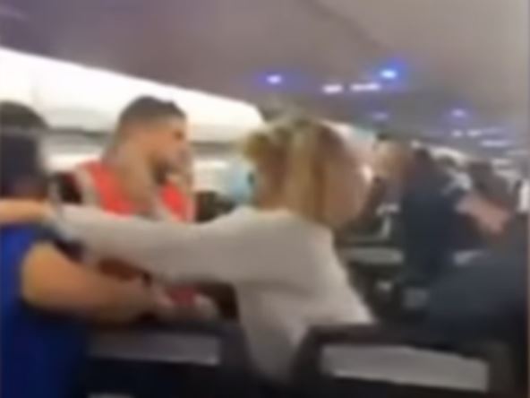 Žena koja je identifikovana kao Njasi Veronika Pejn, kako je saopštila policija, vikala je na jednog od putnika i pokušala da ga napadne, a sukob i tuču koja je izbila snimili su drugi putnici.