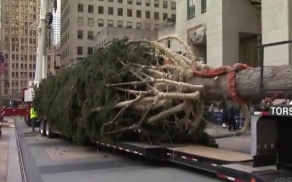 Smrča visoka 23 metara postavljena je u subotu ispred "Rokfeler centra" u Njujorku.