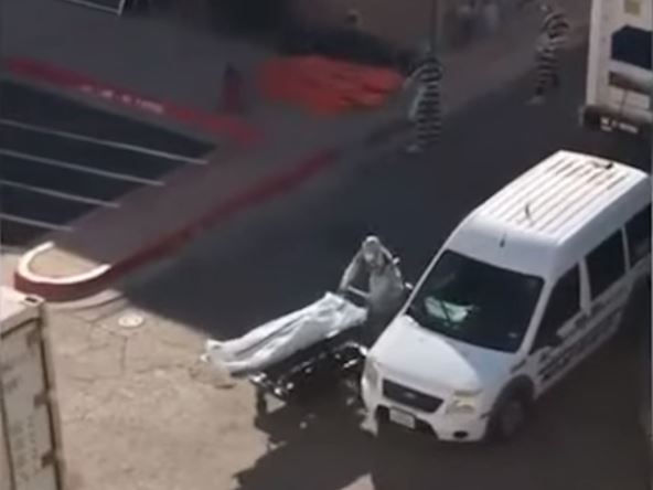 U zatvorskim uniformama, s maskama, rukavicama i zaštitnim naočarima, zatvorenici pomažu u prenošenju umrlih od koronavirusa u hladnjače u teksaškom El Pasu. U mrtvačnicama više nema mesta pa je grad nabavio pet prenosnih hladnjača.