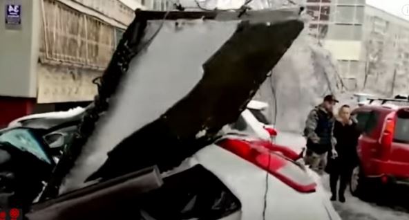 Jedan mladić za dlaku je izbegao smrt dok je bio pored svog automobila kada na vozilo pao deo zgrade pod teretom leda.