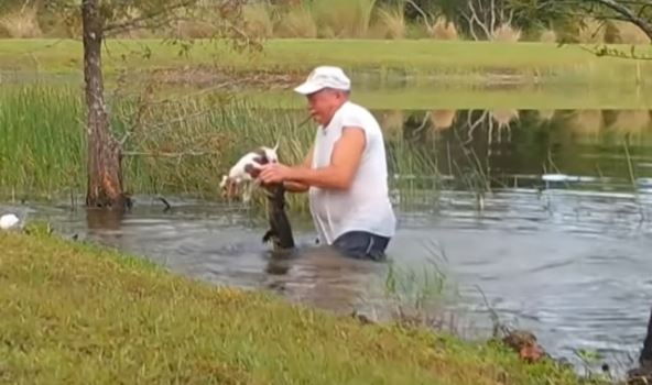 Vilbanks i njegog ljubimac Ganer su bili u šetnji kada je iz obližnjeg jezerceta iskočio aligator i munjevitom brzinom zgrabio psa, pa se izgubio nazad pod vodom gde je nameravao da pojede svoj plen.