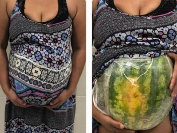 Naime, dosetljiva žena, odlučila je da glumi trudnicu. Ona je odsekla lubenicu na pola, napunila je kokainom, te se pravila da će uskoro postati novopečena majka.