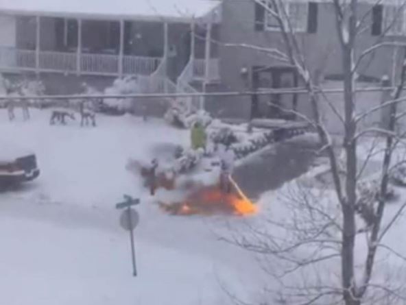 Ovaj Amerikanac je tako odlučio da otopi velike količine snega ispred ulaza njegove porodične kuće i to koristeći ovo opasno oružje.