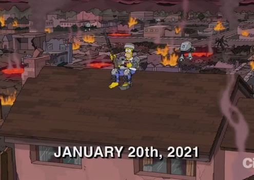 Zatim se prikazuje "20. januara 2021." - dana inauguracije - u kojoj je Homer viđen kako sjedi na svom krovu držeći pištolj, dok grad oko njega gori u onome što izgleda kao apokalipsa.