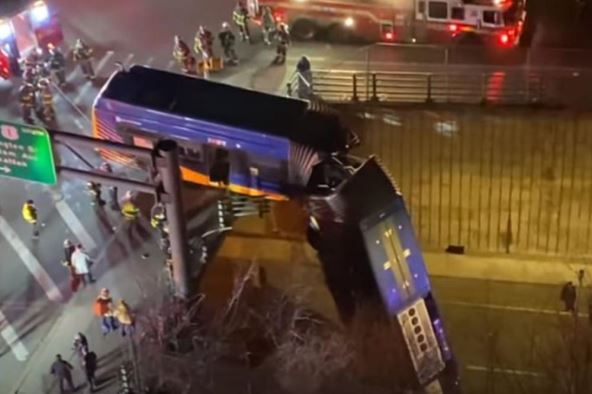Snimci na društvenim mrežama pokazuju da se zglobni autobus razdvojio i da je njegov prednji deo pao sa nadvožnjaka, a drugi deo ostao na nadvožnjaku.
