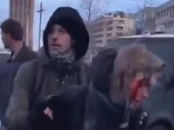 Policija je koristila vodene topove i to ne samo u pravcu mase, već i prema pojedincima, što zasigurno izaziva teške povrede, kao što se vidi na primeru devojke sa snimka, čija je glava sva krvava posle "intervencije" policije.