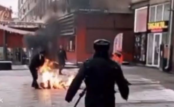 Muškarac je sebe polio benzino, a onda se zapalio. Njemu su odmah pritrčali u pomoć policajci i radnik gradske čistoće, koji je pokušao da ugasi plamen.