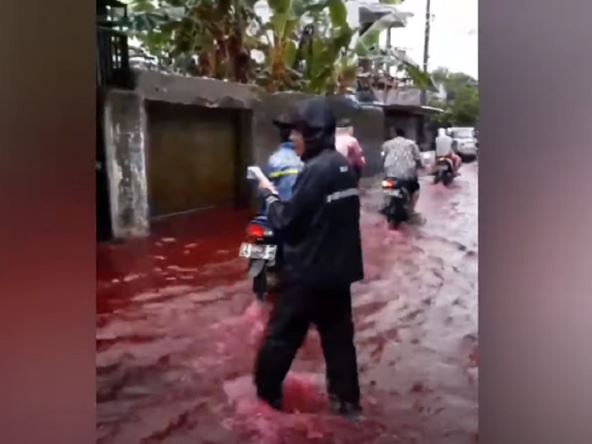 Crvena boja pojavila se na ulicama grada na ostrvu Java, koji je poznat po pravljenju tekstila.