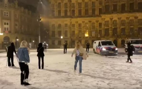 Nakon što su proteklog vikenda napadale neuobičajeno velike količine snega, na amsterdamskom trgu Dam došlo je do grudvanja između policije i prolaznika.