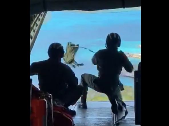 Obalska straža objavila je video snimak, na kojem se vidi kako im spuštaju potrepštine pre spasavanja.