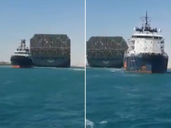 Inače, oko 20.000 tona peska iskopano je oko zaglavljenog gigantskog broda u subotu, a zatim su da ga vukla 14 tegljača, koji su uspeli da pomere polovilo.