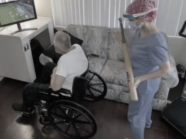Ostavljen sam sa sobom, starac živi sam u kući i nema nikog ko će da brine o njemu, ali povremeno mu u posetu dolazi medicinska sestra koja mu pomaže. Međutim na snimku koji se širi društvenim mrežama, a pogledan više od 41 milion puta možemo da vidimo sestru koja prilazi s leđa nepokretnom dedi u invalidskim kolicima držeći ogromnu bejzbol palicu!