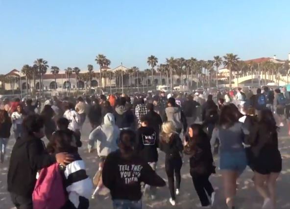 Nakon što su okupljeni počeli da ispaljuju vatromete u blizini logorske vatre, policajci su došli i rekli da skup nije dozvoljen, nakon čega se masa razišla. Policija Hantington biča je na Tviteru upozorila da će se u subotu ponovo pojaviti na plaži zbog najavljene žurke i rekla da će postupiti po zakonu, a to znači bez alkohola, droge ili pirotehnike. AP dodaje da se bez obzira na upozorenje, velika grupa pojavila u subotu uveče, a policija procenjuje da je bilo najmanje 2.500 ljudi na plaži, pre nego što su krenuli ka centru.