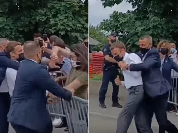 Makron je inače krajnje raspoložen potrčao ka okupljenima, ne sluteći da neće imati prijatnu dobrodošlicu. Prišao je ogradi okružen obezbeđenjem i krenuo da se pozdravlja sa ljudim, a jedan muškarac ga je uhvatio za ruku pa mu nakon toga i lupio šamar.