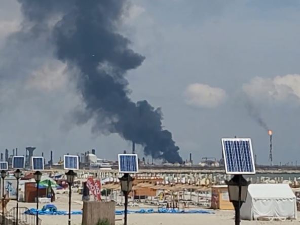 Na toj televiziji emitovan je video koji je snimio jedan turista sa obližnje plaže, na kojem se vidi kako se crni dim uzdiže sa područja pored rafinerije, prenosi Rojters.