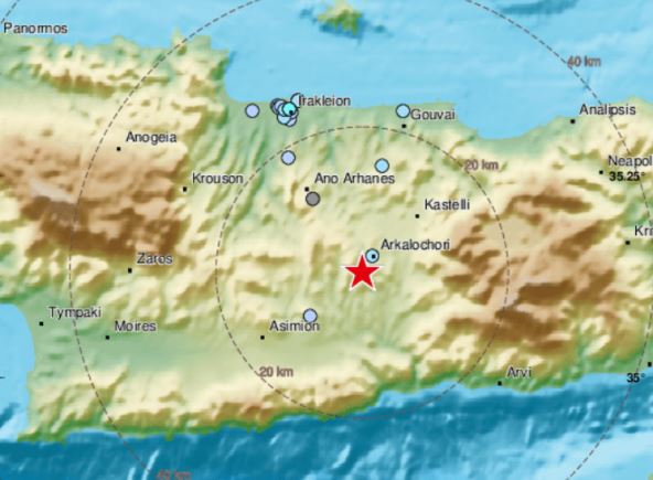 Epicentar zemljotresa bio je 22 kilometra jugoistočno od glavnog grada ostrva Irakliona, na dubini od 4,5 kilometara.