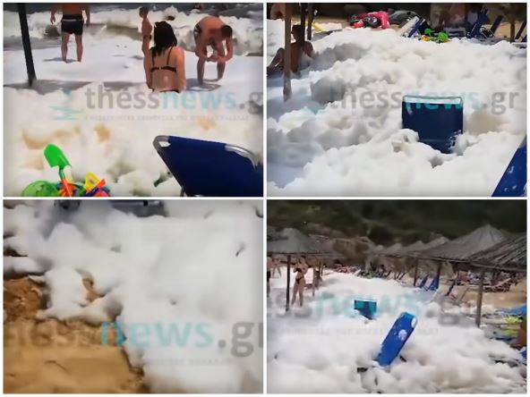 Kupači na plaži Tigania, nedaleko od Sartija na Sitoniji prisustvovali su retkom fenomenu prethodnih dana. Naime, obala je bila preplavljena belom penom, a stručnjaci su u grčkim medijima govorili o ovom retkom fenomenu.