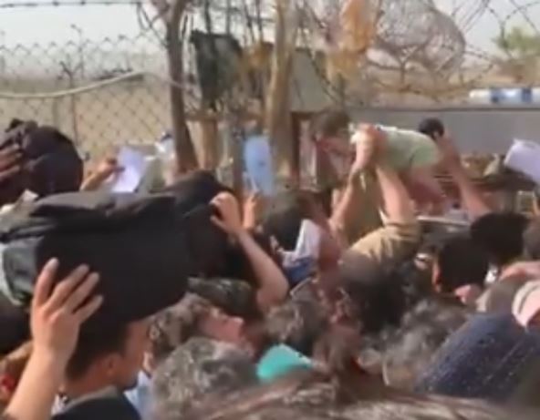 Najnoviji video snimak koji je obišao društvene mreže navodno je nastao u Kabulu, a na njemu se vidi velika grupa ljudi koji se guraju uz ogradu od bodljikave žice. U jednom momentu kako se kamera okreće, vidi se beba podignuta u vazduh i gurnuta iz ruke u ruku, naizgled u pokušaju da se kreće duž bodljikave žice. Jedan visoki vojni oficir govorio je o potresnim scenama.